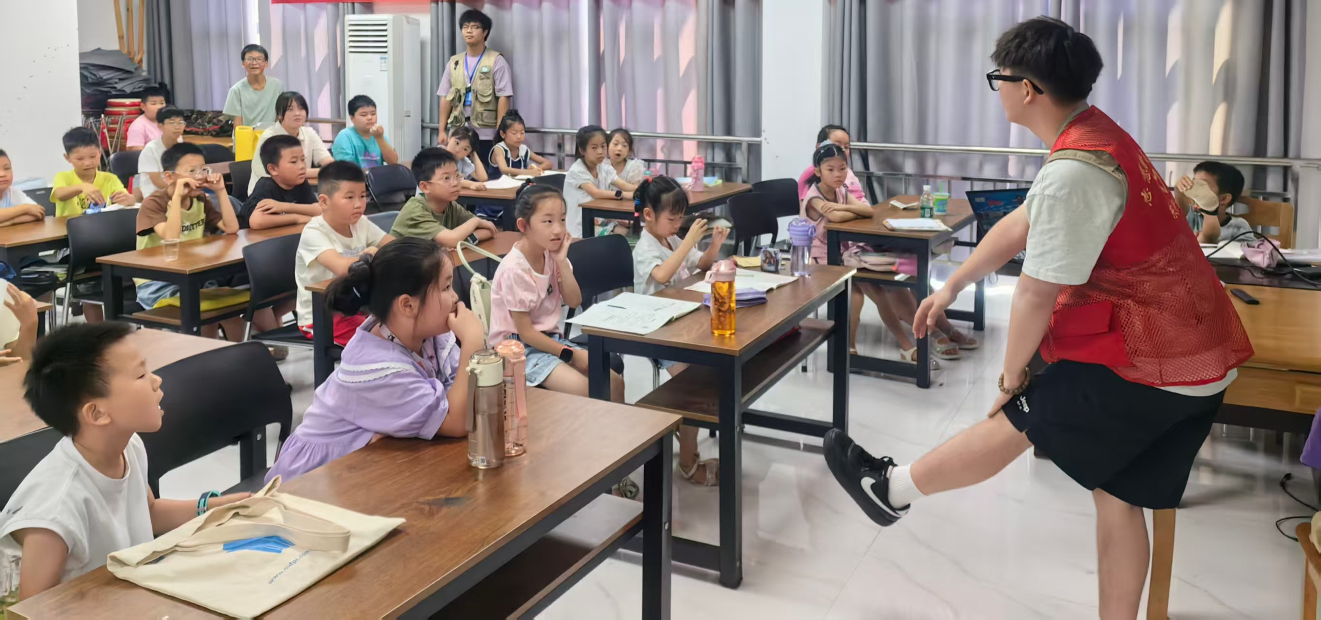 活动现场,志愿者通过播放防溺水警示片,提醒小朋友们在暑假期间做到“六个不”,并通过提问与回答的方式,引导小朋友们牢固树立“安全第一,预防为主”的思想意识,筑牢防溺水安全防线。