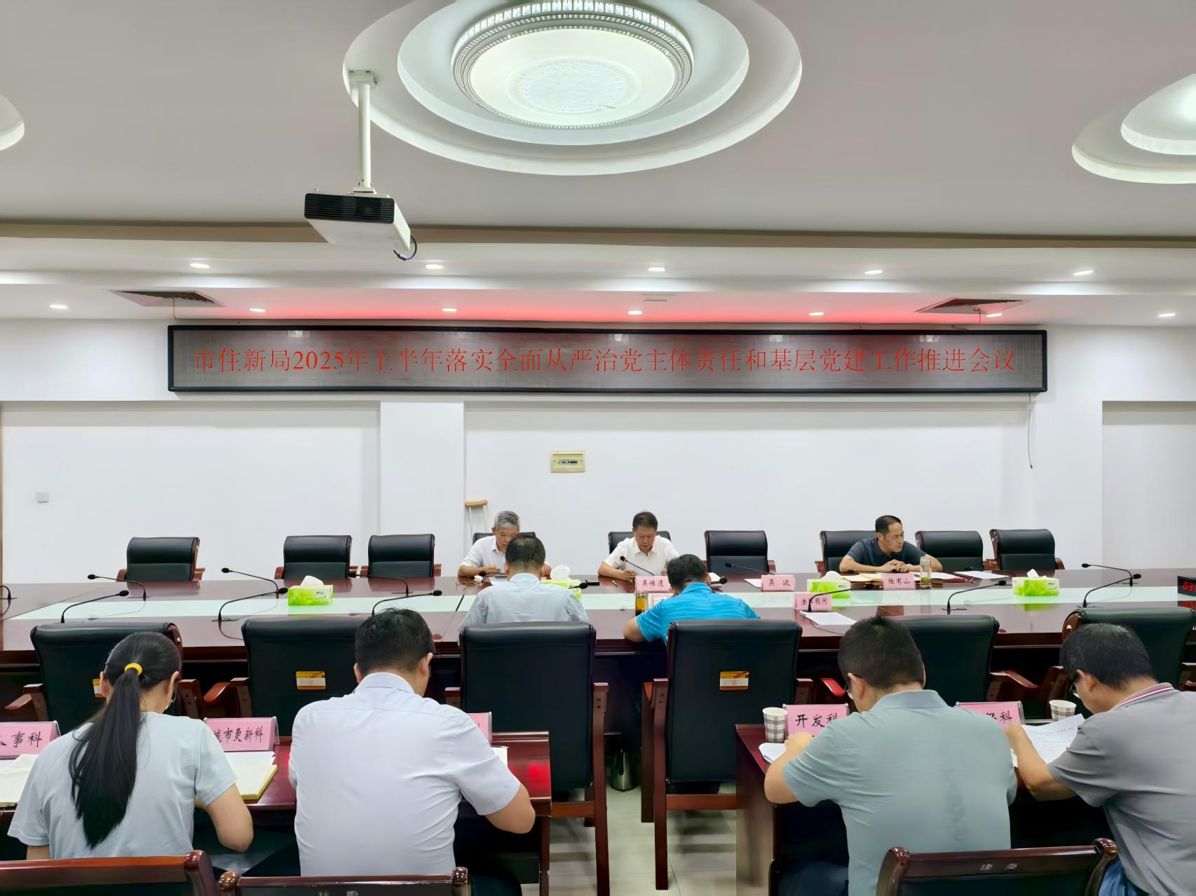 7月21日,市住新局召开2025年上半年落实全面从严治党主体责任和基层党建工作推进会会议,全局在职县级领导干部、科室单位主要负责人、机关党委成员、局属各党支部书记参加会议。会议学习了习近平总书记6月30日在中共中央政治局第二十一次集体学习时的重要讲话精神,并领学《2025年市直机关党建工作要点》《中共咸宁市委统战部2025年工作要点》等文件精神。会上,通报了2025年上半年市住新局落实全面从严治党主体责任和基层党建工作情况,机关支部、项目局支部、排水处支部等支部汇报交流了上半年落实全面从严治党主体责任和基层党建工作开展情况。